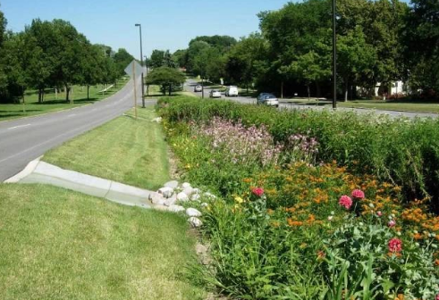 用于綠地雨水回收,通過圍繞草坪周圍壘起約10厘米的高沿,或者降低草坪地面,作成下凹式綠地,承接和回滲雨水.適用于園林、綠化帶等場地.