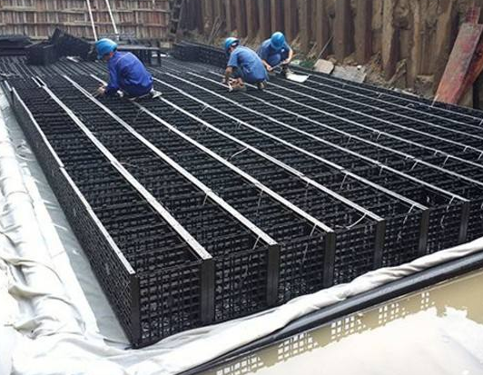 模塊蓄水池是雨水收集系統(tǒng)的重要組成部分。蓄水池起到儲(chǔ)存雨水的作用,它由多個(gè)雨水收集模塊組合而成。雨水收集模塊具有超強(qiáng)的額承載能力,模塊不同的承載壓力下水池上方可做綠化、廣場(chǎng)、停車場(chǎng)等。